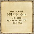 Helene Reis, geboren am 13. August 1886, war die Tochter von Gottfried Reis (Jg. 1850) und seiner Frau Rosa, geborene Pollatschek (Jg. 1857), die in Steyr einen Branntweinhandel betrieben. Nach dem Tod ihres Vaters erbte Helene das Haus in der Gleinkergasse 18 und führte das Spirituosengeschäft weiter. 1938 wurde das Vermögen eingezogen, Haus und Geschäft „arisiert“. Helene Reis musste nach Wien gehen und nahm sich dort gemeinsam mit ihren Schwestern Luise Kohn und Hedwig Mayer am 15. Jänner 1942 das Leben.[9] |