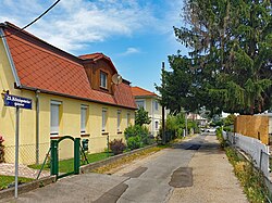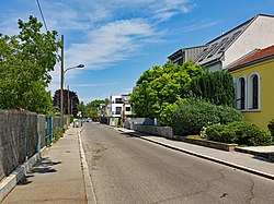 Königsteingasse in der Siedlung Bruckhaufen in Wien-Donaufeld. | Eigenes Werk | Funke | Datei:20210620 Bruckhaufen Königsteingasse.jpg | |