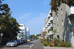 Friedstraße in der Siedlung Bruckhaufen in Wien-Donaufeld. | Eigenes Werk | Funke | Datei:20210620 Bruckhaufen Friedstraße.jpg | |