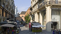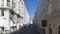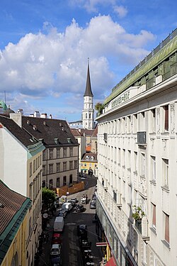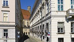 | Die Stallburggasse, Richtung Habsburgergasse gesehen, im 1. Wiener Gemeindebezirk Innere Stadt . Rechts der Bräunerhof und in der Bildmitte der Turm der Michaelerkirche . Links unten im Bild die Evangelische Kirche H.B. , dann ein Wohnhaus und anschließend die Stallburg . | Eigenes Werk | C.Stadler/Bwag | Datei:Wien - Stallburggasse.JPG | |