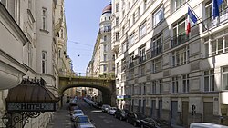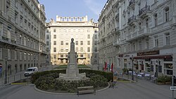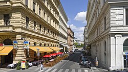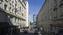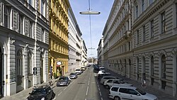 - Esslinggasse (bis 1999 amtlich: Eßlinggasse), 1869 benannt zur Erinnerung an die Schlacht bei Aspern 1809, die früher auch Schlacht bei Essling genannt wurde und in der französischen Literatur immer noch so heißt. Bei den Ortschaften Aspern und Essling fügte Erzherzog Karl dem französischen Kaiser Napoleon Bonaparte dessen erste Niederlage auf dem Schlachtfeld zu. An die Schlacht erinnern in der Donaustadt und in Floridsdorf insgesamt 46 Straßennamen[5], in der Leopoldstadt die Aspernbrückengasse und die Hillerstraße und in Rudolfsheim-Fünfhaus die Stutterheimstraße. Nach der Schlacht ist die Aspernbrücke über den Donaukanal benannt und nach deren Erbauer Georg Rebhann von Aspernbruck in der Brigittenau die Rebhanngasse. Die Gasse entstand nach dem Abbruch der Stadtbefestigung im Bereich der Elendbastei.