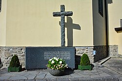 Gedenktafel beim großen Kreuz vor dem Friedhof |