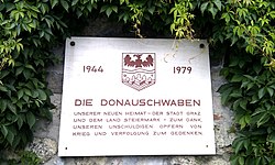 „1944–1979. Die Donauschwaben. Unserer neuen Heimat – der Stadt Graz und dem Land Steiermark – zum Dank. Unseren unschuldigen Opfern von Krieg und Verfolgung zum Gedenken.“ |