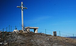 Gedenkstein mit Bronzetafel auf einem Hügel bei St. Anna |