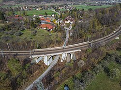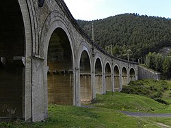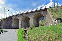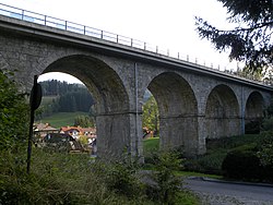 Das Viadukt hatte eine Länge von 25 Metern und eine Höhe von 11 Metern.[2] Das dreibogige Viadukt wurde durch eine Betonbogenbrücke mit seitlicher Steinverkleidung ersetzt.[17] Anmerkung: nicht mehr existent |
