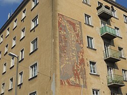 1949–1951 | Anton Siegl, Joseph Zimmel | Sgraffitowandbild Brigitta-Kirtag von Hermine Aichenegg | 112 | Identadresse Friedrich-Engels-Platz 17 | |