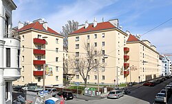 1924–1925 | Adolf Stöckl, Konstantin Peller, Karl Stoik | 136 | Denkmalschutz Identadresse Edergasse 6-10, Kantnergasse 62-66 |