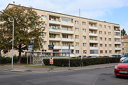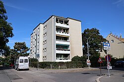 1950–1954 | Franz Schuster | Natursteinplastik „Sitzende weibliche Figur“ von Franz Fischer | 1609 | Denkmalschutz Nach dem Architekten gelegentlich Franz-Schuster-Wohnsiedlung genannt |