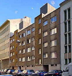 | Diese Datei zeigt den Wiener Gemeindebau mit der ID 647 . | Eigenes Werk | Thomas Ledl | Datei:Bernardgasse 10, Vienna.jpg | |