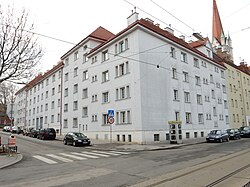 | Diese Datei zeigt den Wiener Gemeindebau mit der ID 1237 . | Eigenes Werk | Rosso Robot | Datei:2020-05-28 Gemeindebau Brunnengasse 7 front.jpg | |