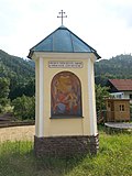 Der Nischenbildstock wurde 1975 an den Ortseingang versetzt und erneuert. Die Malereien stammen von Toni Fötsch aus dem Jahre 1978.[2] | BDA-Hist.: Q37773311 Status: § 2a Stand der BDA-Liste: 2024-06-15 Name: Bräuer-Kreuz GstNr.: 1464/12 Bräuer-Kreuz |