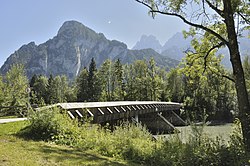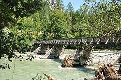 Die alte Holzbrücke wurde am 18. Juli 2010 durch Treibholzstau beschädigt, musste in der Folge abgerissen und durch einen Neubau ersetzt werden.[10] |
