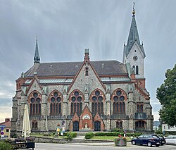 Die Pfarrkirche von Aigen stellt einen der bedeutendsten späthistoristischen Sakralbau Oberösterreichs dar. Die neogotische, hohe, dreischiffige Kirche mit fünfjochiger Staffelhalle wurde nach zwei schweren Bränden zwischen 1897 und 1901 nach Plänen von Raimund Jeblinger errichtet. Die einheitliche, neogotische Einrichtung umfasst unter anderem einen Hochaltar von Josef Linser, zwei neogotische Seitenaltäre und eine neogotische Kanzel. | BDA-Hist.: Q24088379 Status: § 2a Stand der BDA-Liste: 2024-06-15 Name: Kath. Pfarrkirche hl. Johannes Evangelista GstNr.: 1155/1 Saint John the Evangelist church in Aigen |
