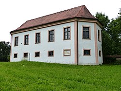 Das im späten 17. bis frühen 18. Jahrhundert errichtete Sommerhaus ist ein zweigeschoßiger längsrechteckiger Bau mit angestiftetem Walmdach, Putzrahmengliederung und Rechteckportal mit darüberliegendem Balkon. | BDA-Hist.: Q37850325 Status: § 2a Stand der BDA-Liste: 2024-06-15 Name: Sommerhaus Stift Schlägl, Musikzentrum St. Norbert GstNr.: 59 Sommerhaus Schlägl |