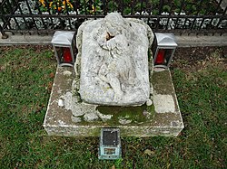 Das Grabdenkmal befindet sich östlich der Gruftkapelle auf dem Friedhof. Es handelt sich um eine Steinskulptur eines schlafenden Kindes vom Ende des 19. oder Anfang des 20. Jahrhunderts.[2] | BDA-Hist.: Q38089394 Status: § 2a Stand der BDA-Liste: 2024-06-15 Name: Grabdenkmal GstNr.: 671 |