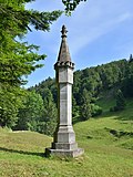 | “Inschrift” zum Andenken: An dieser Stelle stand das hoelzerne im J.1807 abgebrochene Rathhaus des Inner-Bregenzerwaldes in welchem der freigewaehlte Landammann und Rath durch Jahrhunderte die Angelegenheiten der Gemeinden nach altem Landsbrauch berathen, beschlossen u. verwaltet haben. /// aus dem DEHIO Vorarlberg 1983: GEDENKSÄULE, am Bezegg. Errichtet 1871 vom Wiener Dombaumeister und Ringstrassenarchitekten Friedrich von Schmidt als Erinnerungsmal an das 1807 abgebrochene Rathaus des Inneren Bregenzerwaldes , in Bezau . | Eigenes Werk | böhringer friedrich | Datei:Bezeggsul1.JPG | |