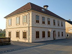 Ein zweigeschoßiges kubisches Bauwerk mit Walmdach und späthistoristischer Fassade.[2] | BDA-Hist.: Q37939528 Status: Bescheid Stand der BDA-Liste: 2024-06-15 Name: Wohnhaus, ehem. Pfarrhof GstNr.: 1900 |