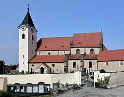 | Südostansicht der röm.-kath. Pfarrkirche hl. Margareta und ehemaligen Kollegiatstiftskirche in der niederösterreichischen Marktgemeinde Ardagger und ganz rechts ein Teil der ehemaligen Anna- bzw. Friedhofskapelle. Die Kirche wurde im 13. Jahrhundert errichtet, im 14. Jahrhundert umgebaut, im Jahr 1529 von den Türken geplündert und in Brand gesetzt. Sie lag dann fast 40 Jahre lang in Trümmern und wurde ab 1567 durch Probst Grübler wieder aufgebaut. 1620/27 fand eine erste Barockisierung statt und eine zweite 1678. Im Jahr 1784 erfolgte die Aufhebung des Stiftes und 1804/06 wurde der Kirchturm errichtet. | Eigenes Werk | C.Stadler/Bwag | Datei:Ardagger - Kirche hl. Margareta.JPG | |