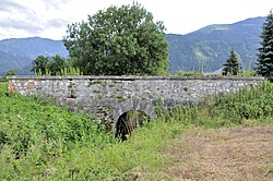 Die Brücke wurde 1855–1863 vom Villacher Mauermeister Johann Picco und seinem Sohn Andreas Carl nach Plänen von Josef Bouffleur erbaut. Dieses beeindruckende Beispiel traditioneller Brückenbaukunst des 19. Jahrhunderts wurde 1995 saniert.[7] Die Brücke verbindet die Gemeinden Arnoldstein und Hohenthurn. | BDA-Hist.: Q38019146 Status: § 2a Stand der BDA-Liste: 2024-06-15 Name: Gailitzbrücke GstNr.: 1193/3, 1221/2 Gailitzbrücke Hohenthurn-Arnoldstein |