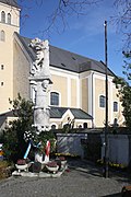 Das Kriegerdenkmal neben der Kirche hat eine wuchtige Säule mit einer Statue des hl. Sebastian. Es ist mit W(ilhelm) Frass 1922 bezeichnet. | BDA-Hist.: Q37945485 Status: § 2a Stand der BDA-Liste: 2024-06-15 Name: Kriegerdenkmal GstNr.: 871/3 |