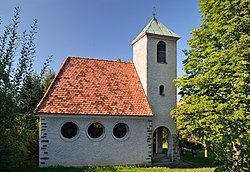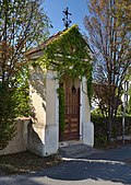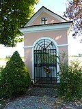 Der gemauerte Kapellenbildstock, der als Urlauber-, Wallfahrts- oder Steinböckkapelle bezeichnet wird, datiert auf die erste Hälfte des 18. Jahrhunderts, hat ein Satteldach mit Dreiecksgiebel (im Giebelfeld eine Nische mit Kreuz) über einem dreistufigen Gesims, darunter eine Rundbogennische, in der sich hinter einem mit 1891 bezeichneten Schmiedeeisengitter ein barockes Pietà-Bild befindet.[6] | BDA-Hist.: Q37946326 Status: § 2a Stand der BDA-Liste: 2024-06-15 Name: Urlauberkapelle, Wallfahrtskapelle GstNr.: 170 |