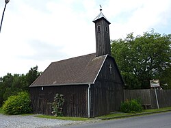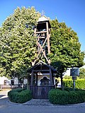 Wegkapelle mit vorgestelltem hölzernem Glockenturm in der Ortsmitte. Statue des Auferstandenen Christus aus der 1. Hälfte des 18. Jahrhunderts. | BDA-Hist.: Q37946241 Status: § 2a Stand der BDA-Liste: 2024-06-15 Name: Flur-/Wegkapelle GstNr.: 126 Wayside shrine and bell tower, Untergrafendorf |