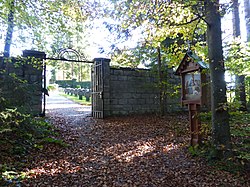 Der Friedhof steht östlich vom Missionshaus St. Rupert in einer Waldlichtung und ist von einer Mauer umgeben und wurde nach 1910 angelegt. Der neugotische rechteckige Kapelle mit einem runden Abschluss unter einem Satteldach hat einen gemauerten Giebel mit Gesims und seitliche Wand- und Stützpfeiler und einen Dachreiter. | BDA-Hist.: Q64692187 Status: § 2a Stand der BDA-Liste: 2024-06-15 Name: Friedhof und Friedhofskapelle GstNr.: 106/2 Missionshaus St. Rupert - cemetery, Bischofshofen |
