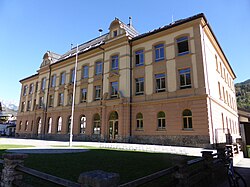 Dreigeschoßiger historistischer Schulbau mit Mittelrisalit mit geschwungenem Dachgiebel. Fassadenplastik mit 1924 bezeichnet in Rundbogennische. | BDA-Hist.: Q37909357 Status: § 2a Stand der BDA-Liste: 2024-06-15 Name: Schule GstNr.: .614 |