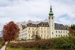 Der viergeschoßige breitgelagerte Gebäudekomplex mit mehreren Anbauten und Nebengebäuden wurde in mehreren Bauetappen errichtet und erweitert. Das Hauptgebäude zeigt gegen Westen einen betonten Eckrisalit mit einer zurückgesetzten Mittelfassade und einem gemauerten Giebelaufsatz. | BDA-Hist.: Q16801769 Status: § 2a Stand der BDA-Liste: 2024-06-15 Name: Missionshaus St. Rupert GstNr.: .267, 96 Missionshaus St. Rupert, Bischofshofen |