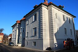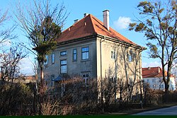 Die villenartigen ehemaligen Offizierswohnhäuser von Siegfried Theiss und Hans Jaksch entstanden von 1915 bis 1917. Sie sind vom Heimatstil auf klassizistischer Grundlage geprägt. | BDA-Hist.: Q105647125 Status: Bescheid Stand der BDA-Liste: 2024-06-15 Name: Ehem. Offizierswohnhaus GstNr.: 1162/4 Offizierswohnhäuser Hauptstraße, Neurißhof |