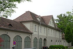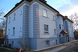 Die beiden villenartigen Direktionswohngebäude wurden um 1916 mit neobarocken und klassizistischen Gestaltungselementen errichtet. | BDA-Hist.: Q38017133 Status: Bescheid Stand der BDA-Liste: 2024-06-15 Name: Villa, ehem. Direktionsgebäude GstNr.: 1336/11 |