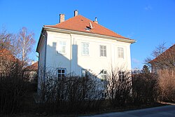 Das zweigeschoßige einstige Bürogebäude entstand in den 1890er Jahren. | BDA-Hist.: Q38017052 Status: Bescheid Stand der BDA-Liste: 2024-06-15 Name: Wohnhaus, ehem. Bürogebäude GstNr.: 1287/1 |