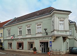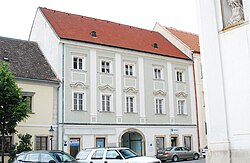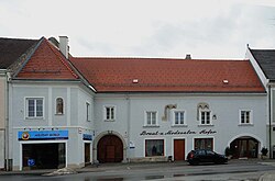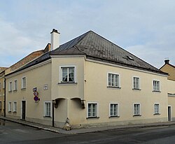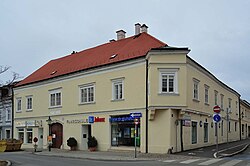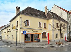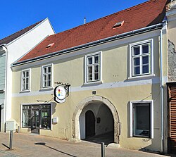 Das Eckhaus mit einem langen Trakt in der Wiener Gasse stammt in der Bausubstanz aus dem Mittelalter. Bei einer Restaurierung im Jahr 1985 wurden Schlitzfenster des ehemaligen Wohnturms aus dem 13. Jahrhundert sowie mehrere mittelalterliche Bauteile freigelegt. | BDA-Hist.: Q37762594 Status: Bescheid Stand der BDA-Liste: 2024-06-15 Name: Bürgerhaus GstNr.: 13 |