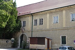 Der Pfarrhof stammt in seiner Substanz aus dem 16. Jahrhundert und wurde 1732 umgebaut. Die tiefe dreiflügelige Anlage weist einen dreigeschoßigen Straßentrakt mit zwei übergiebelten Korbbogenportalen auf. Der sogenannte Freskensaal im Erdgeschoß zeigt Wand- und Deckenmalereien aus der 2. Hälfte des 16. Jahrhunderts. | BDA-Hist.: Q37762627 Status: § 2a Stand der BDA-Liste: 2024-06-15 Name: Pfarrhof GstNr.: 10 |