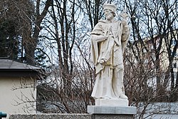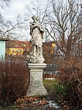 Die Statue des hl. Johannes Nepomuk aus der 1. Hälfte des 18. Jahrhunderts steht nördlich außerhalb des Ortes. | BDA-Hist.: Q37834426 Status: § 2a Stand der BDA-Liste: 2024-06-15 Name: Figur hl. Johannes von Nepomuk GstNr.: 2080 |