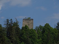 | Blick von Süden auf den Bergfried der Burgruine Waldstein | Eigenes Werk | Liuthalas | Datei:Burg Waldstein, Deutschfeistritz Süd 02.jpg | |