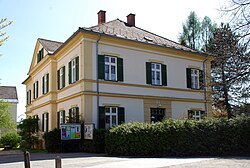 Das Gebäude ist ein zweistöckiger Wohnbau, der nur teilweise, mit seiner Außenerscheinung, der Dachterrasse und dem Stiegenhaus unter Schutz gestellt ist.[10] Ignatz Strutz war Ziegeleibesitzer und Bürgermeister von Deutschlandsberg von 1886 bis 1888 und von 1907 bis 1919. Unter Ignatz Strutz erhielt Deutschlandsberg das Stadtrecht. | BDA-Hist.: Q37961432 Status: Bescheid Stand der BDA-Liste: 2024-06-15 Name: Villa GstNr.: .108 Villa Strutz-Gasse 1, Deutschlandsberg |