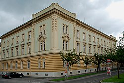 Dieses Gebäude ist ein Erweiterungsbau der seit 1872 bestehenden Bezirkshauptmannschaft Deutschlandsberg . Anmerkung: Der Bau befindet sich im Norden des Ortskerns von Deutschlandsberg am nördlichen Ende der Kirchengasse auf einem Grundstück der EZ 83 KG 61006 Deutschlandsberg. |