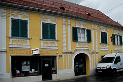 Das Haus hat eine Rokoko-Fassade mit Stuckverzierungen aus der 2. Hälfte des 18. Jahrhunderts.[3] Anmerkung: Das Gebäude liegt auf einem Grundstück der EZ 54 KG 61006 Deutschlandsberg. |