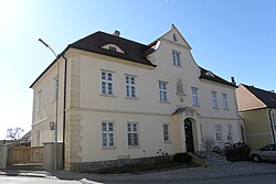 Laut Inschrift am Portal wurde der Pfarrhof 1911 erbaut. | BDA-Hist.: Q38172232 Status: § 2a Stand der BDA-Liste: 2024-06-15 Name: Pfarrhof GstNr.: 4 |