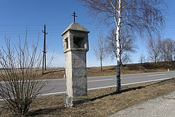 Anmerkung: Der Bildstock stand lange unmittelbar neben der Baustelle der Umfahrung Drasenhofen. Trotz einer damals vorhandenen Einhausung ist er heute stark beschädigt. |