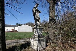 Die Statue am südlichen Ortsausgang ist auf Grund einer Renovierung mit der Jahreszahl 1807 bezeichnet, stammt aber aus der Barockzeit. Früher stand diese Statue an der Schlossbrücke die nach 1805 jedoch abgebrochen wurde. Am Sockel findet sich das gräfliche Wappen. | BDA-Hist.: Q38172145 Status: § 2a Stand der BDA-Liste: 2024-06-15 Name: Figurenbildstock hl. Florian GstNr.: 3176/1 |