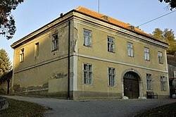 Das ehemalige Verwalterhaus ist ein zweigeschoßiger Bau mit flachem Mittelrisalit und schlicht gegliederter Fassade. Die Fenster im Obergeschoß haben Bogennischen. | BDA-Hist.: Q38060957 Status: Bescheid Stand der BDA-Liste: 2024-06-15 Name: Wohnhaus, ehem. herrschaftliches Verwalterhaus GstNr.: .144 |