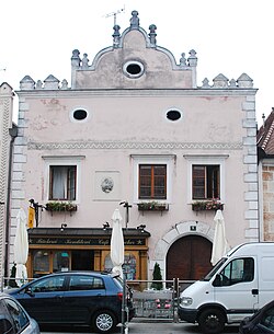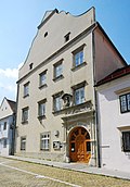 Das Bürgerhaus in der Südostecke des Grätzls ist ein großes, dreigeschoßiges Eckhaus aus der Zeit um 1528, mit zwei hohen Eckerkern auf Kragsteinen und mit barocken Hauben. Die barocke Fassadengestaltung mit Erdgeschoßnutung und Pilastern, Putzparabeten, profilierten Fensterstürzen und -sohlbänken und einer profilierten Portalumrahmung mit einer Kartusche im Sturzfeld geht auf die Zeit um 1720/1730 zurück. | BDA-Hist.: Q37953870 Status: Bescheid Stand der BDA-Liste: 2024-06-15 Name: Bürgerhaus GstNr.: 175 |