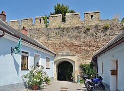 | Gesamtanlage Eggenburg - Stadtbefestigung nördliche Teile, das alte Glacis wurde teilweise in Gärten umgewandelt. Blick auf die Mauer von außerhalb der Stadt. | Eigenes Werk | Herzi Pinki | Datei:City wall north, Eggenburg 03.jpg | |