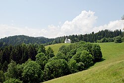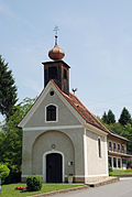 Die Filialkirche auf dem Zambichl wurde an der Stelle einer älteren Kapelle 1645–1653 in der traditionellen Form einer gotischen Landkirche von Jakob Ničarc gebaut. Die Weiheinschrift nennt das Jahr 1659. Renovierungen erfolgten außen 1957, innen 1966. Der Hochaltar ist mit 1659 datiert, er wurde 1859 restauriert. Die Orgel aus der zweiten Hälfte des 17. Jahrhunderts stammt aus der Pfarrkirche von Soboth.[16] Anmerkung: Die Kirche liegt abseits öffentlicher Straßen auf einer Waldlichtung im Ortsteil Zambichl von Soboth. Sie ist auf Fußwegen von 300 (von der Soboth-Bundesstraße) bis 500 Meter (vom Stausee Soboth) und ca. 60 Höhenmeter zu erreichen. Ihr Gebäude liegt auf einem Grundstück der EZ 22 KG 61140 Soboth. |