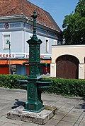 | Eibiswald, Steiermark, Österreich: Brunnen am oberen Platz Dieses Bild zeigt das in Österreich unter der Nummer 4069 denkmalgeschützte Objekt. ( Commons , de , Wikidata ) | Selbst fotografiert | Josef Moser | Datei:Eibiswald Brunnen am oberen Platz.jpg | |