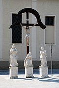 | Eibiswald, Steiermark, Österreich: Figurengruppe nördlich Pfarrkirche Dieses Bild zeigt das in Österreich unter der Nummer 4065 denkmalgeschützte Objekt. ( Commons , de , Wikidata ) | Selbst fotografiert | Josef Moser | Datei:Eibiswald Figurengruppe.jpg | |