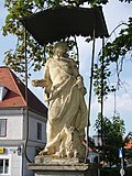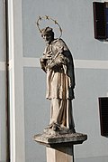 Die Statue stammt aus der Zeit um 1730. | BDA-Hist.: Q37875467 Status: § 2a Stand der BDA-Liste: 2024-06-15 Name: Figur hl. Johannes Nepomuk GstNr.: 81/1 |