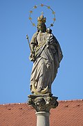 Die Mariensäule von J. Fellner wurde 1664 auf dem Hauptplatz errichtet. 1954 renoviert. | BDA-Hist.: Q37897421 Status: § 2a Stand der BDA-Liste: 2024-06-15 Name: Mariensäule GstNr.: 1724/9 Mariensäule Hauptplatz Fürstenfeld |